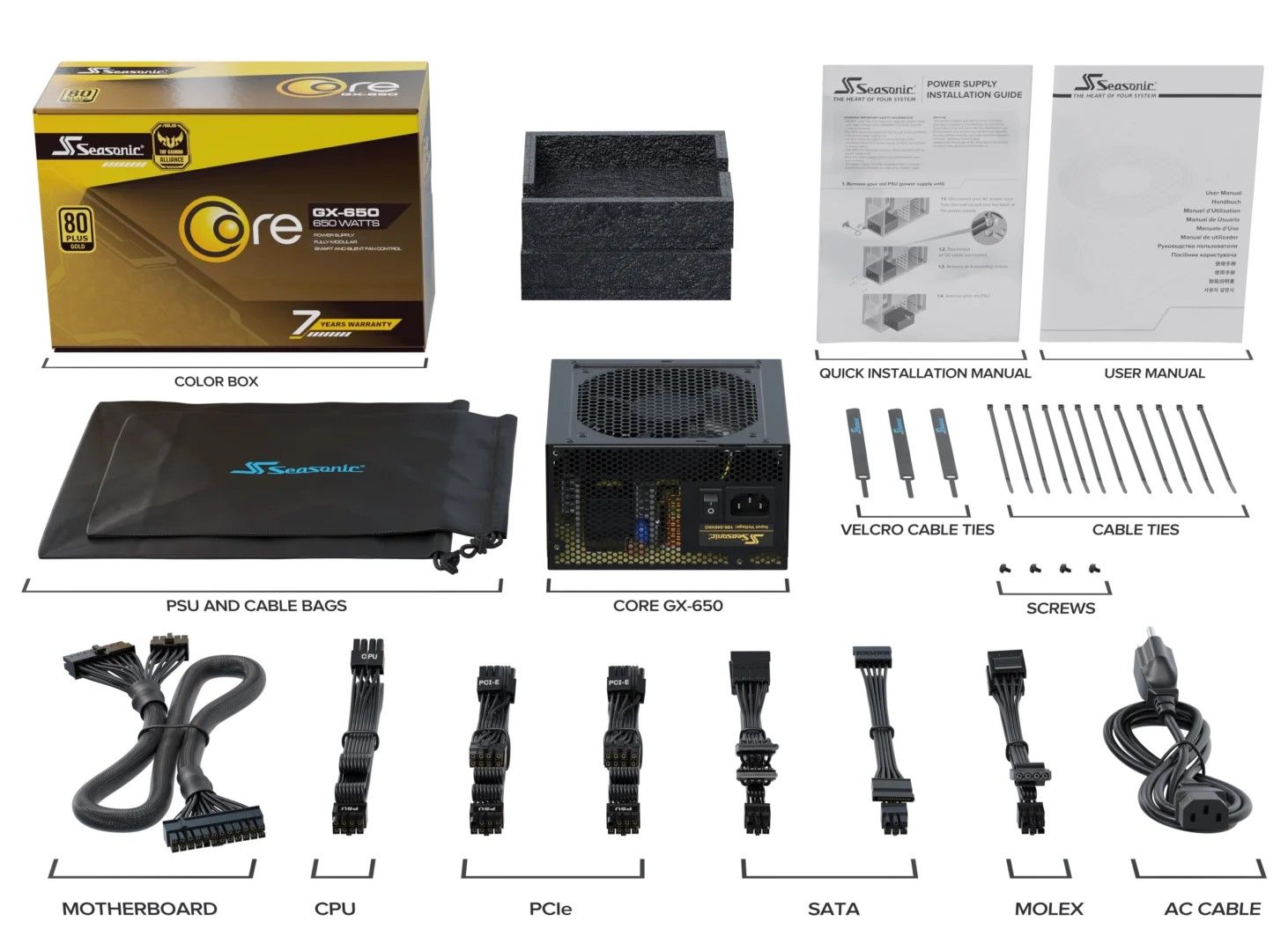 Seasonic Prime GX-650, 650 W, 100 – 240 V, 50/60 Hz, 9 – 4.5 A, 100 W, 648 W
