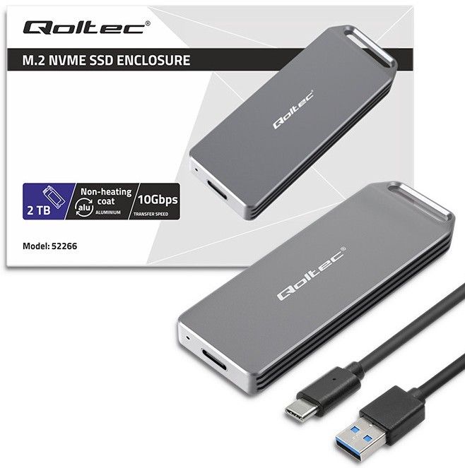 Custodia portatile e compatta in alluminio per SSD M.2, consente di collegare l’SSD al dispositivo desiderato tramite un cavo USB. La custodia è compatibile con unità di diverse lunghezze. L’interfaccia USB-C 3.1 Gen2 consente il trasferimento dati a velocità fino a 10 Gbps. Una singola unità supporta un massimo di 2 TB. Funzione Plug&Play.
