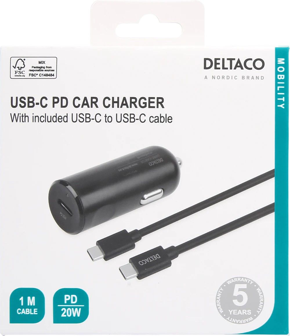 Caricabatterie da auto compatto con 1 porta USB-C e Power Delivery fino a 20 W per la ricarica rapida dei tuoi dispositivi USB-C compatibili.