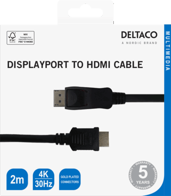 Cavo DELTACO DisplayPort a HDMI, 4K UHD, 2 mt, nero