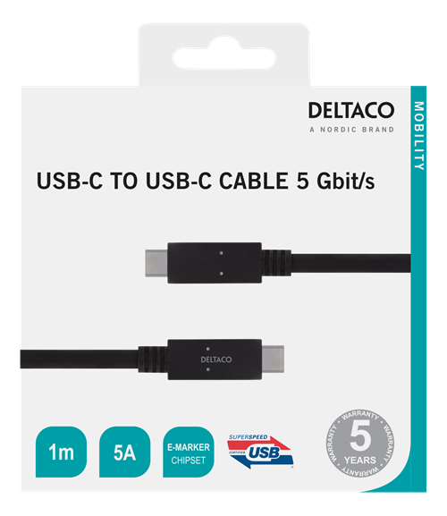 Cavo di collegamento da USB-C a USB-C con velocità di trasferimento di 5 Gbit/s e corrente di uscita fino a 5 A