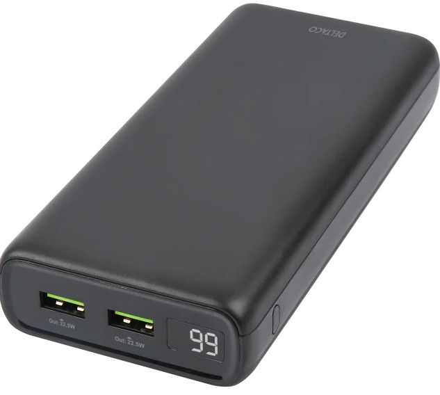 Questo DELTACO Power Bank è in grado di caricare fino a tre dispositivi contemporaneamente. Inoltre, l’uscita PD da 60W può caricare anche la maggior parte dei laptop! Il power bank è dotato di un sensore di temperatura interno e di una serie di funzioni di sicurezza, tra cui protezione da sovraccarico, scaricamento eccessivo, sovracorrente e cortocircuito. Puoi monitorare facilmente il livello della batteria di questo power bank tramite il suo indicatore digitale del livello della batteria.