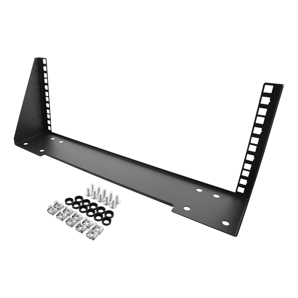 Staffa da parete verticale con un’altezza di 4U per poter installare interruttori, patch panel o altre unità da 19 “a parete. Utilizzabile anche sotto un tavolo come illustrato nelle immagini. Utilizzabile anche per il montaggio su tavolo