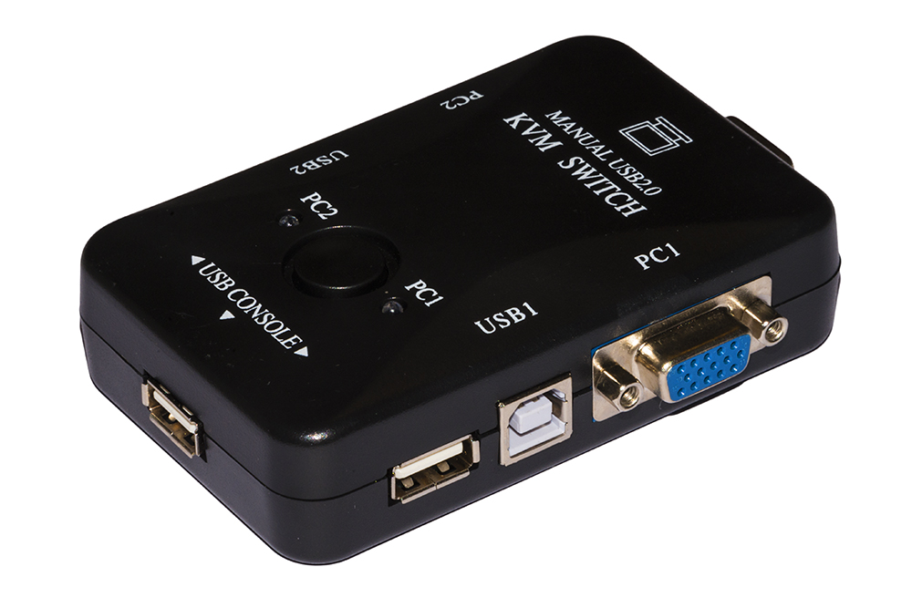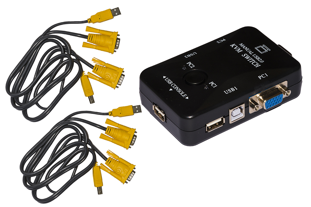 Una soluzione economica per usare 2 PC o 2 notebook con un mouse, una tastiera USB e un monitor VGA, con cavi per il collegamento dei PC da 1,5 metri inclusi.