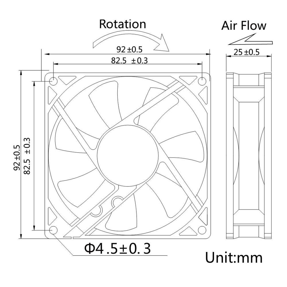 Ventola Case 92x92x25mm 12V 3pin